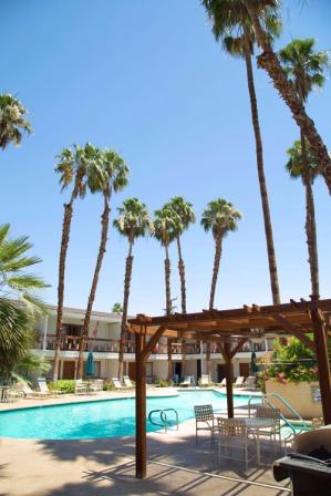 "So happy to found this little gem. Great location. Very friendly and clean. Beautiful pool. Very quiet during my two night mid week stay. Walking to stores and restaurants. Not fancy but really affordable and what the Desert used to be. If you aren't playing golf and wanting multiple pools, why pay the added on resort fees. Free Wi-Fi, free parking, continental breakfast. I will be back."